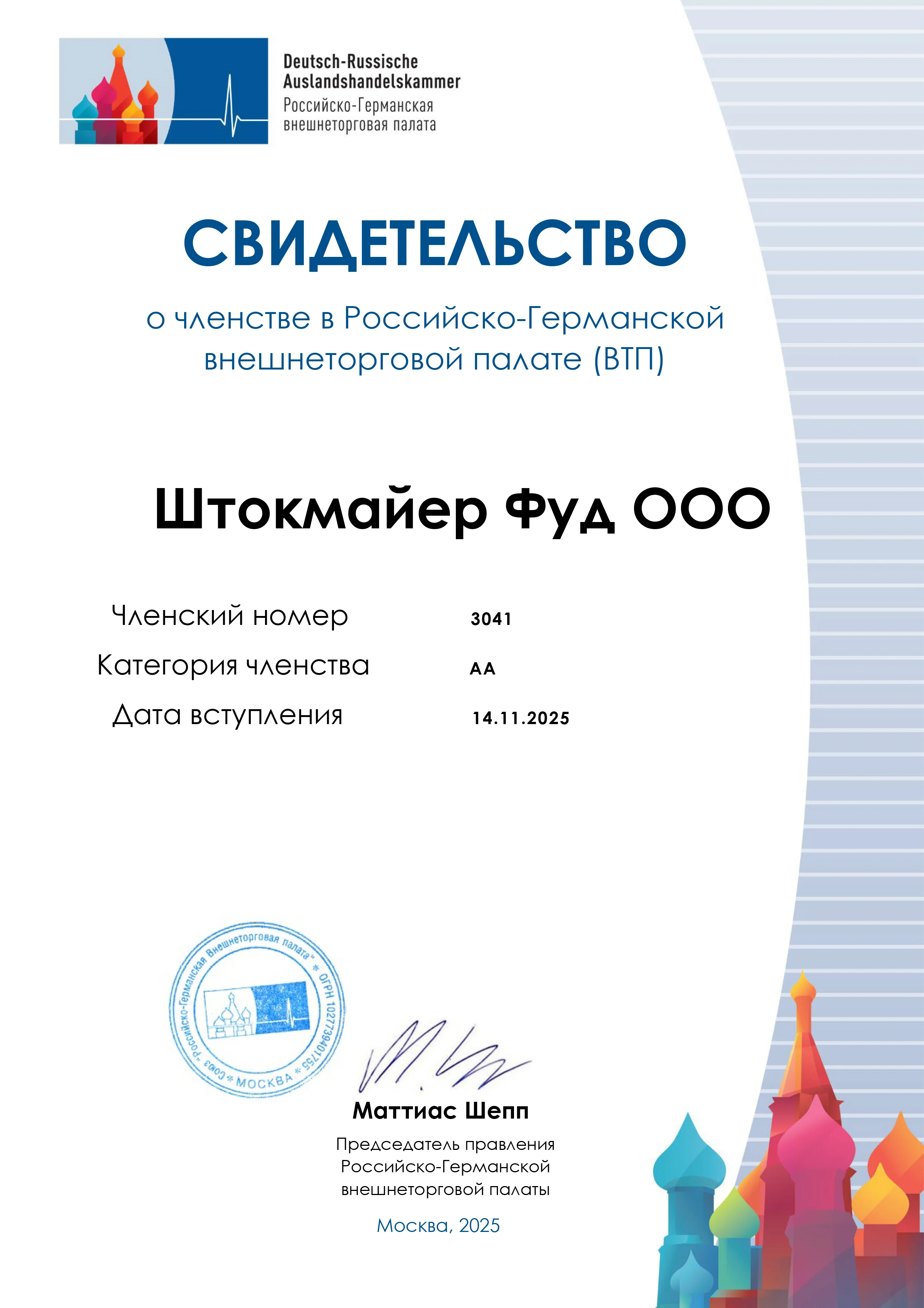 ЧЛЕНСТВО В РОССИЙСКО-ГЕРМАНСКОЙ ВНЕШНЕТОРГОВОЙ ПАЛАТЕ (ВТП)
